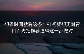 想省时间就看这条:91视频想更对胃口?先把推荐逻辑这一步做对 当你打开91视频,首页却总是被不感兴趣...