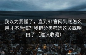 我以为我懂了,直到91官网到底怎么用才不后悔?我把分类筛选这关踩明白了(建议收藏)