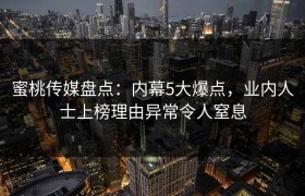 蜜桃传媒盘点:内幕5大爆点,业内人士上榜理由异常令人窒息