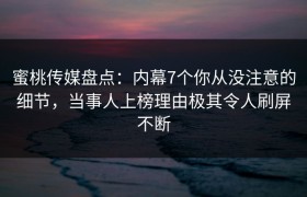蜜桃传媒盘点:内幕7个你从没注意的细节,当事人上榜理由极其令人刷屏不断