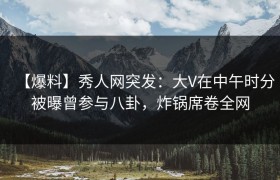 近日,秀人网突发一则劲爆的消息——一位知名的大V在中午时分被曝出曾参与某起广为流传的八卦事件,消息一...