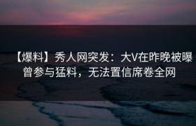 近日,一则爆料在社交平台上引起了轩然大波。秀人网的突发新闻称,某位人气明星曾在深夜参与了一起令人震惊...