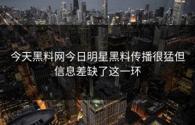今天黑料网今日明星黑料传播很猛但信息差缺了这一环